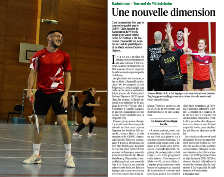 Passionné et champion de badminton, Quentin fait la une du journal local Alscacien pour célebrer son passage en N3 avec sa partenaire de jeu, Jeanne