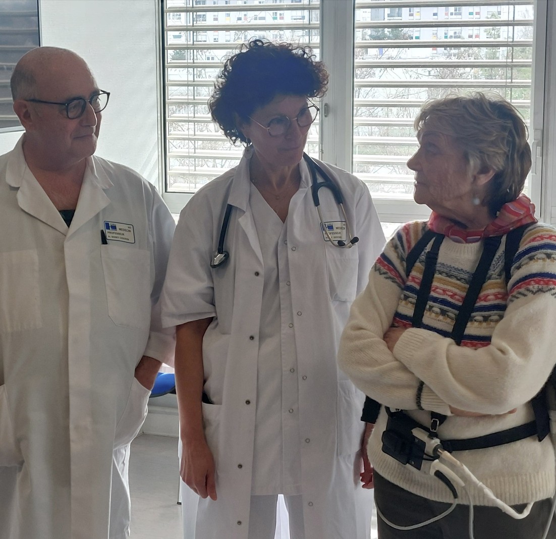 Vendredi dernier, les équipes impliquées dans l’activité d’implantation d’assistance cardiaque - cardiologie, chirurgie cardiaque et réanimation chirurgicale – ont fêté avec Madame Goyet, âgée de 77 ans, ses dix ans d’assistance cardiaque. Un partage émouvant et porteur d’espoir pour les patients en insuffisance cardiaque avancée.