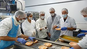 En véritable chef d'orchestre, Hugues Droz, a accompagné l'unité de production culinaire dans la réalisation des différentes étapes de préparation et de production. Les plats ont été définis en tenant compte des impératifs d'approvisionnement et adaptés aux procédés de fabrication culinaire de l'hôpital. L'ensemble du personnel de restauration s'est pleinement investi et mobilisé pour préparer ce menu aux saveurs chocolatées et automnales.