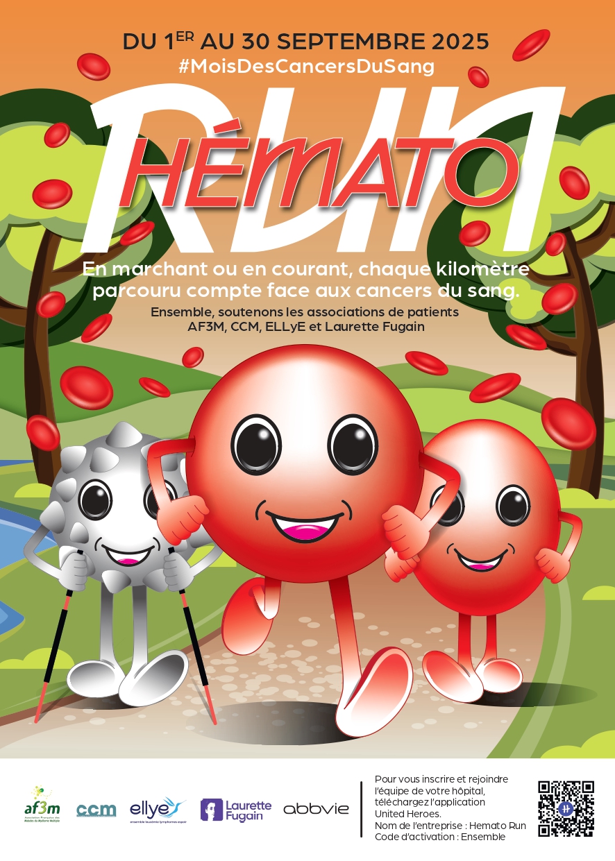 Du 1er au 30 septembre, à l’occasion du Mois des Cancers du Sang, AbbVie France lance la 2e édition de l’Hémato Run. En marchant ou en courant dans cette course virtuelle et solidaire, soutenez les associations de patients atteints d'un cancers du sang : AF3M, CCM, ELLyE et Laurette Fugain.