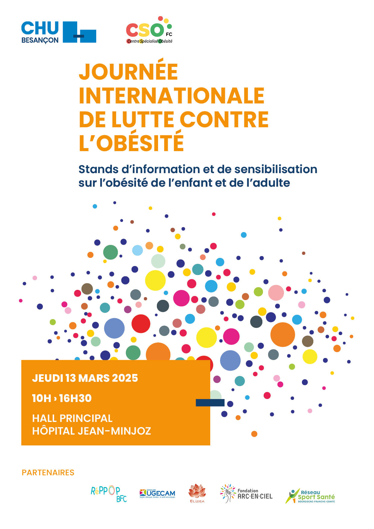 Le jeudi 13 mars 2025, l’hôpital Jean-Minjoz, via le centre spécialisé en obésité de Franche-Comté et ses partenaires, vous invite à une journée d’échange autour du thème de l’obésité.