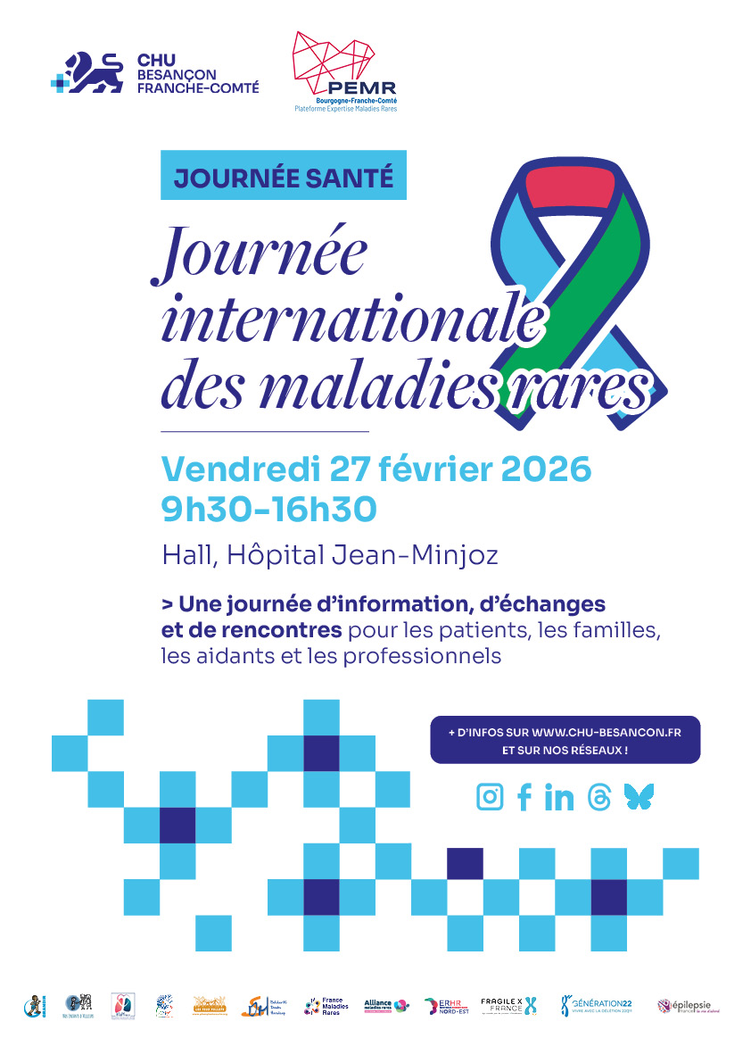 À l’occasion de la Journée internationale des maladies rares, le CHU Besançon Franche-Comté se mobilise aux côtés de la Plateforme d’expertise maladies rares Bourgogne-Franche-Comté (PEMR BFC).