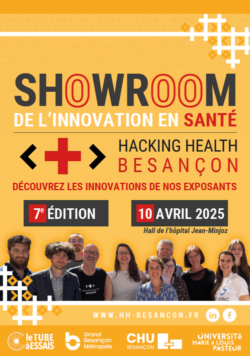 Le Showroom de l’innovation organisé par Hacking Health Besançon revient pour une septième édition, le jeudi 10 avril 2025, de 9h30 à 16h00 dans le hall principal du CHU.