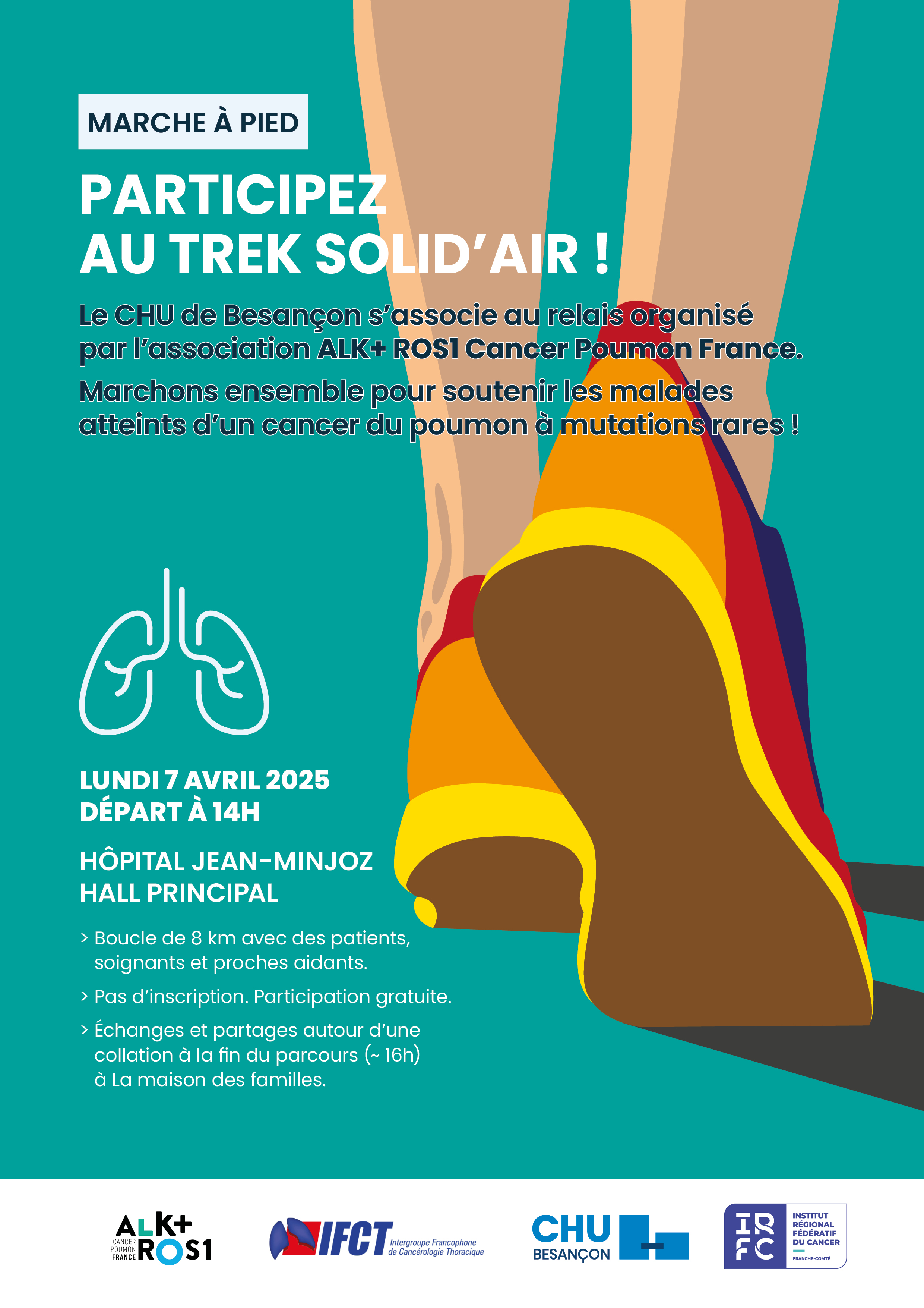 Le lundi 7 avril, le CHU de Besançon s’associe au relais organisé par l’association ALK+ ROS1 Cancer Poumon France. Marchons ensemble pour soutenir les malades atteints d’un cancer du poumon à mutations rares !