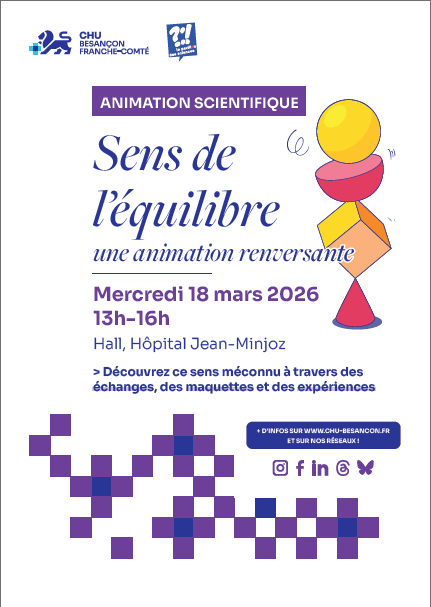 Mercredi 18 mars 2026, une animation scientifique originale sera proposée par le Pavillon des sciences dans le hall de l'hôpital Jean-Minjoz. De 13h à 16h, professionnels, patients et visiteurs pourront venir découvrir le sens de l’équilibre, un sens souvent méconnu mais essentiel à notre quotidien.