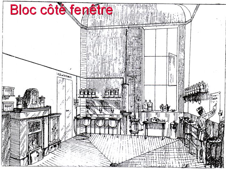 | Les blocs opératoires en tiendront de plus en plus compte et les opérateurs auront ainsi le temps de devenir plus précis et méticuleux, imaginant que le temps ne comptait plus pour mener une intervention à bien. Encore fallait-il pour cela y voir clair ! Pour ces raisons de " clair-voyance ", à la façon des ateliers des rapins, les blocs étaient souvent juchés au dernier étage des bâtiments hospitaliers, sous de grandes verrières, frontales voire zénithales ou au rez-de-chaussée, à la façon des jardins d'hiver et toujours exposés au sud pour ce qui est de l'hémisphère nord . En effet, l'éclairage artificiel n'avait rien à voir avec nos pratiques contemporaines. Le gaz fut introduit dans les hôpitaux à partir de 1854 et Besançon ne fut pas en retard à cet égard. | ||