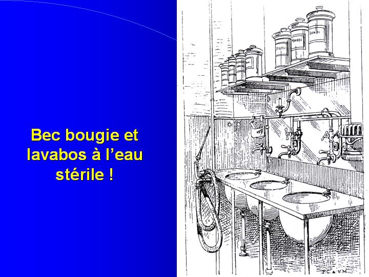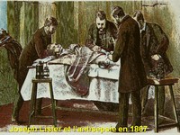 était maîtrisée. Le succès des interventions chirurgicales restait lourdement grevé par une mortalité allant de 20 à 30% pour des raisons de surinfection de la plaie opératoire, en relation avec l'ignorance des praticiens sur l'existence microbienne. Lister, à Londres, sera le premier à appliquer des mesures d'antisepsie qui feront chuter le risque létal de ses interventions à 2%. Il en remerciera publiquement Pasteur et les années suivantes verront se développer les mesures d'antisepsie et surtout d'asepsie. |
