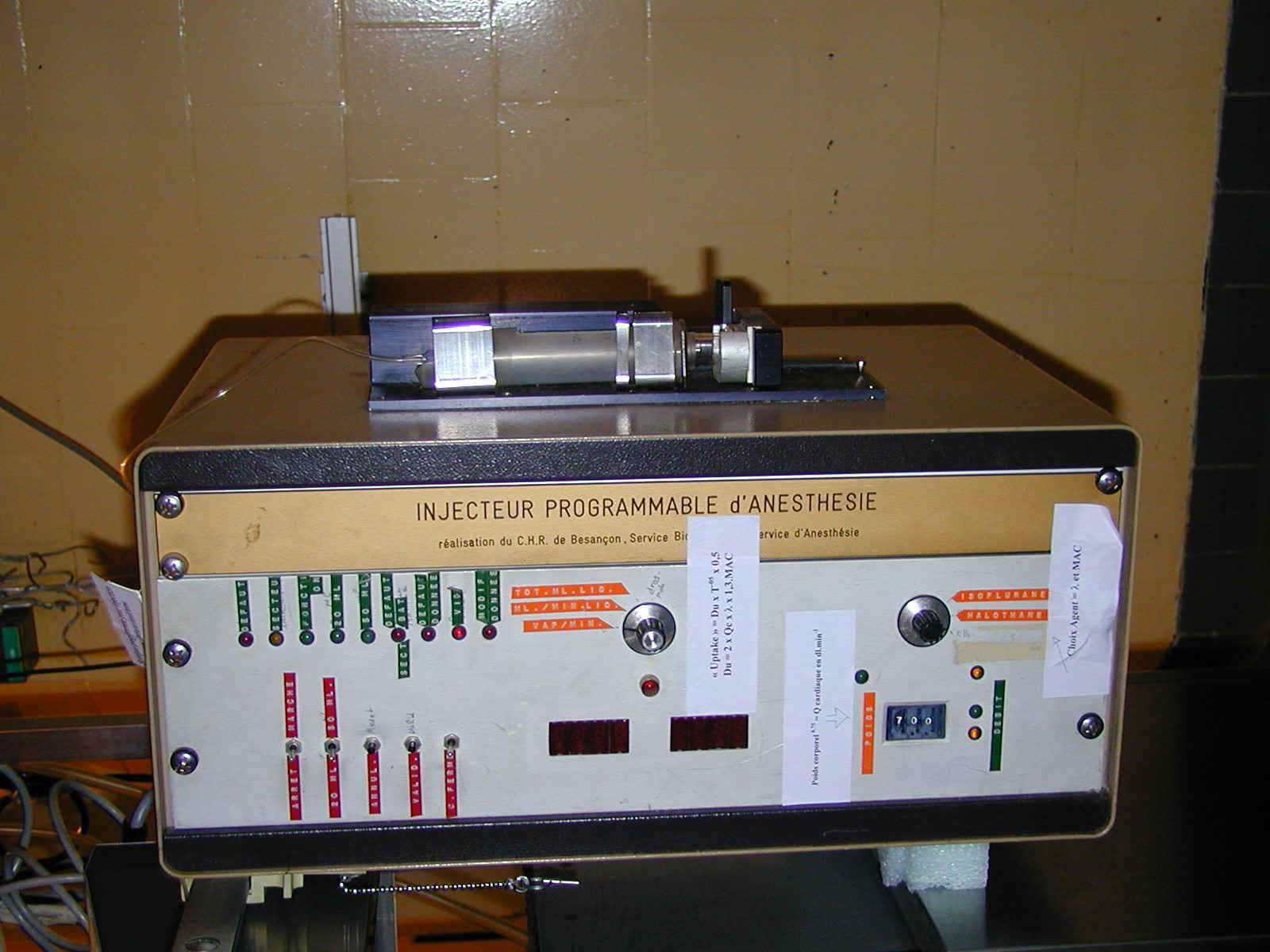 Pousse-seringue programmable pour anesthésiques volatils(1979)