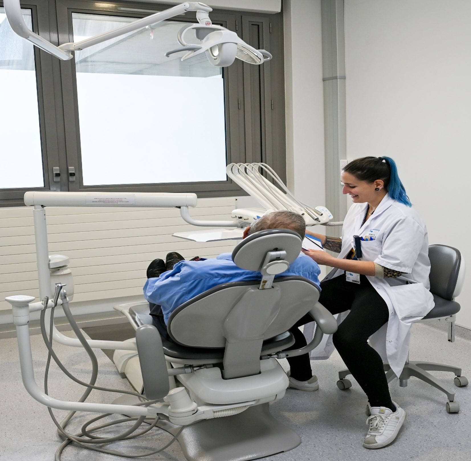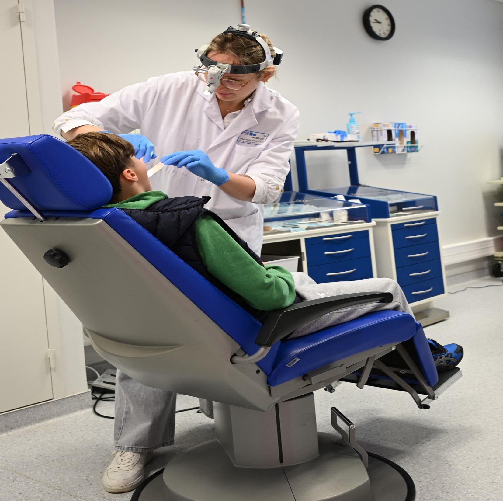 - pour la stomatologie : elles peuvent être réalisées sur des fauteuils stomatologiques (position assise) ou dans une salle dédiée (position couchée) au niveau des consultations externes (bâtiment gris, niveau 0).