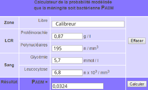 Calculateur de la probabilité modélisée que la méningite soit bactérienne PABM